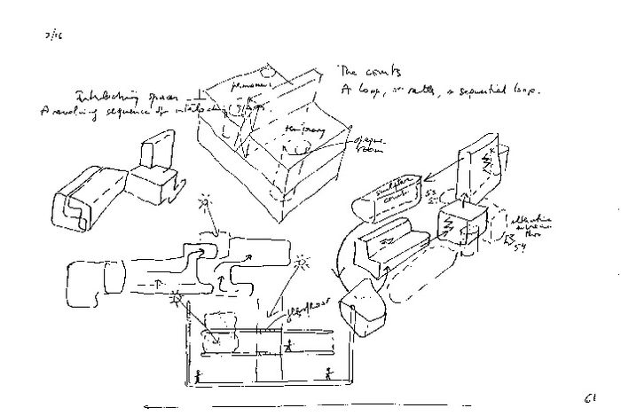 concept muséographique innovant, permettant à la fois des expositions interdisciplinaires et changeantes (principe d’espace d’exposition fixe et variable) et la présentation d’oeuvres actuelles ou futures classées par type de public et supports.